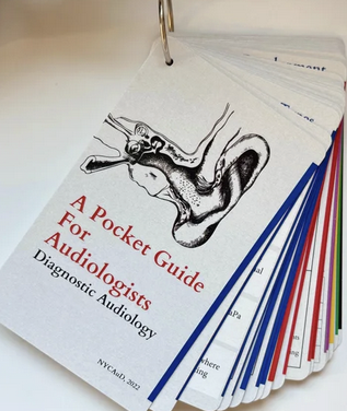 My first big idea was the pocket guides. In the practice where I worked for years, we had random papers and sticky notes everywhere—word lists, formulas, CI candidacy criteria, billing codes, even Jongkees’ formula, a calculation used to assess a patient's balance function. I found tons of pocket guides for nurses and doctors but none for audiologists. So I made my own. Now I have full pocket guide sets covering diagnostics, pediatrics, cochlear implants, vestibular testing, ototoxicity, and more.