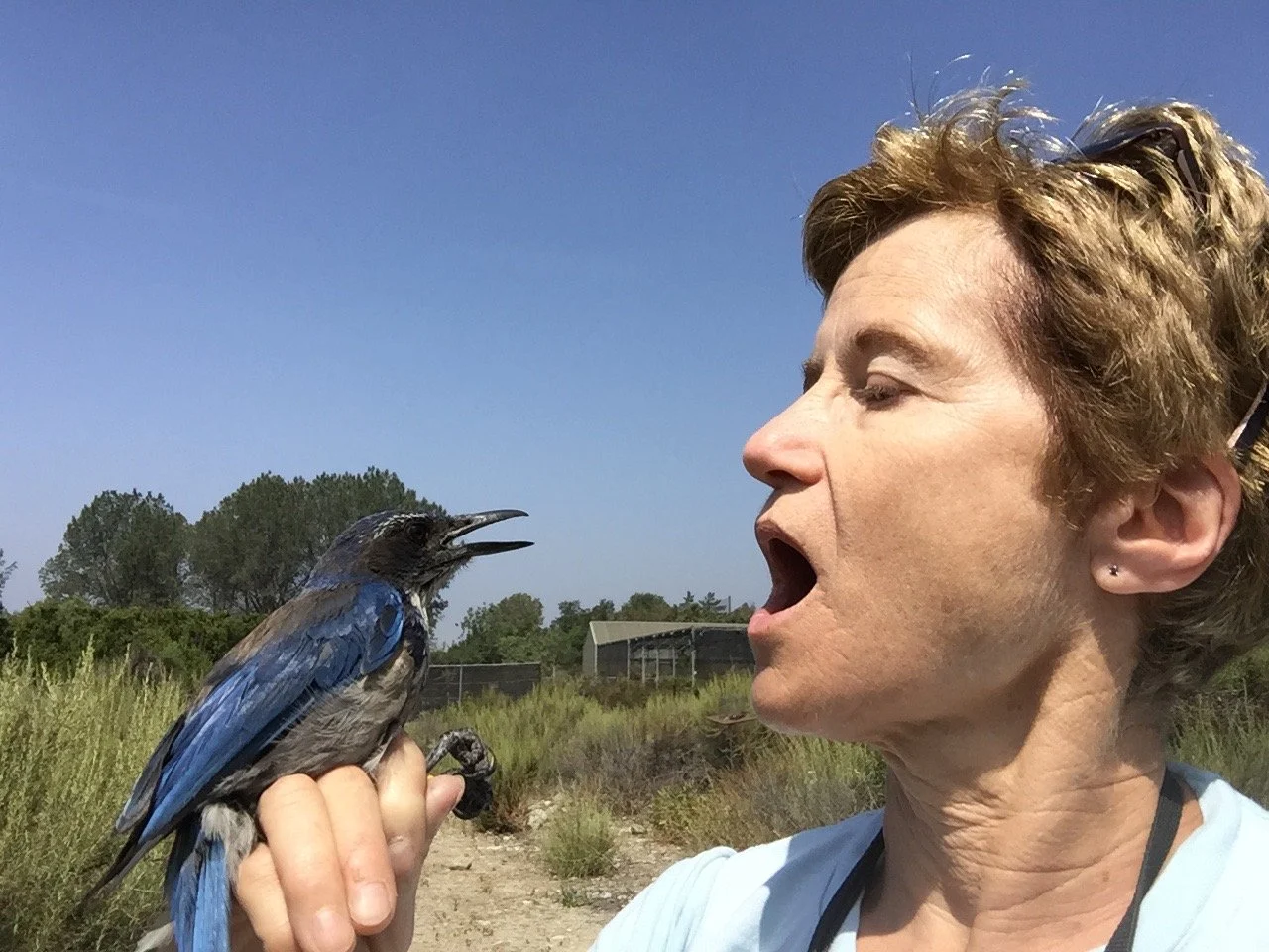 With a California scrub jay.